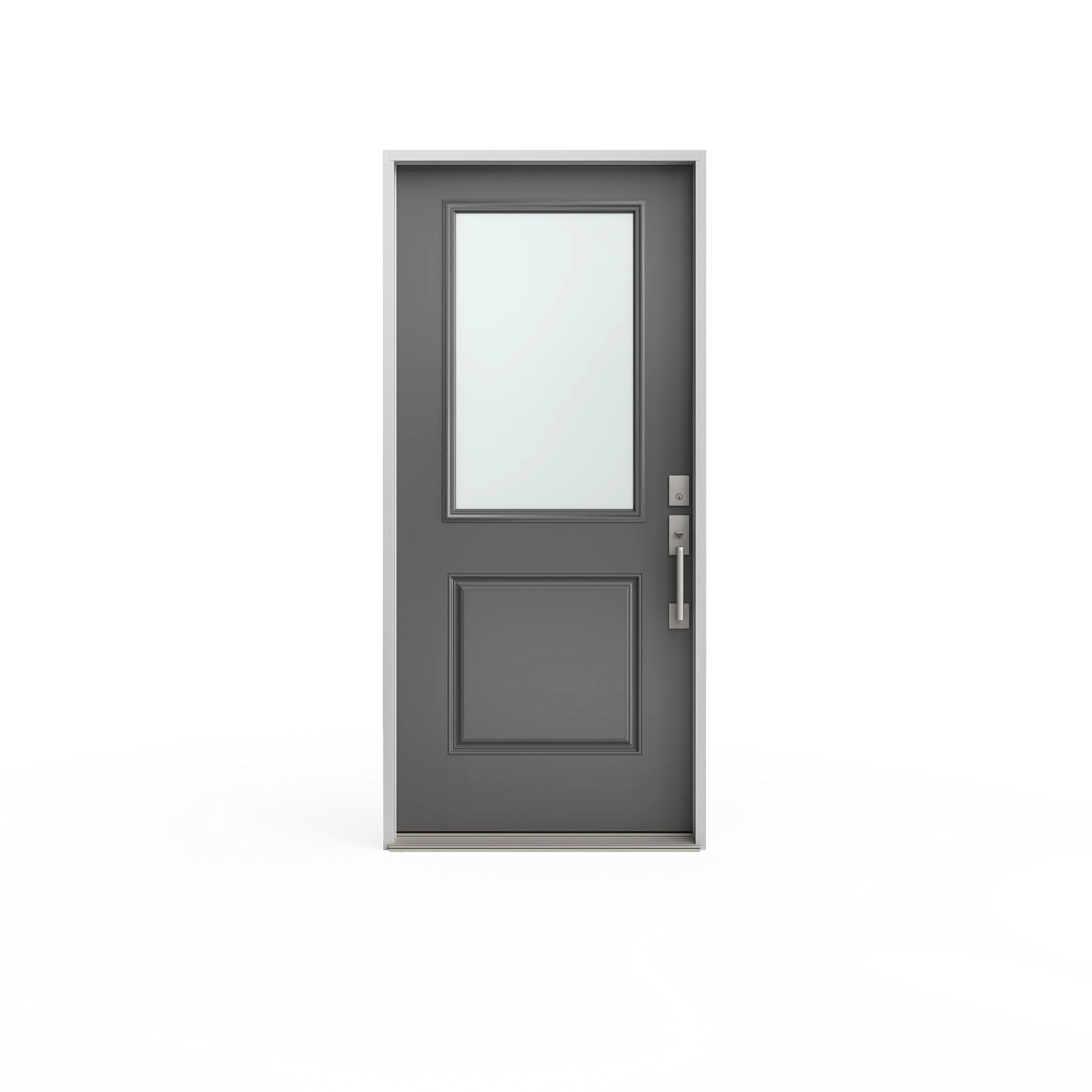 Belleville fiberglass doors feature a raised frame around the glass, creating a more classic look. This Square 2 Panel door door can be painted or stained in any hue to match your style.