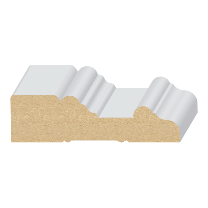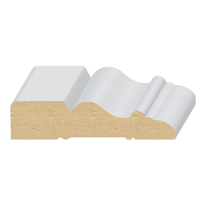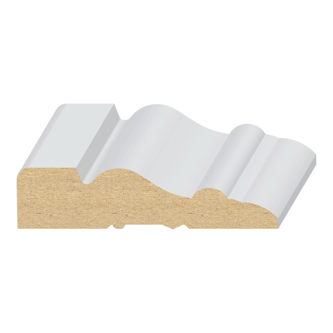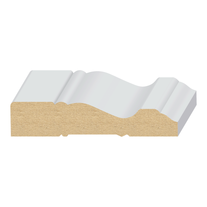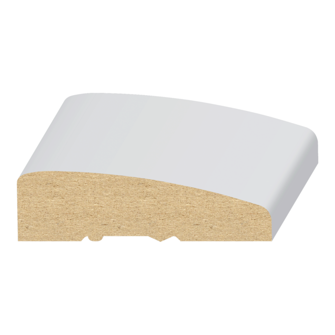 The Scant 2 Round Edge Casing (2RE) in MDF Ultralight is a crown molding product, measuring 16 feet in length. It features a width of 3-1/4 inches and a thickness of 9/16 inches, offering a lightweight and durable solution for interior trim. This casing provides a sleek, rounded edge for a refined and modern finish.